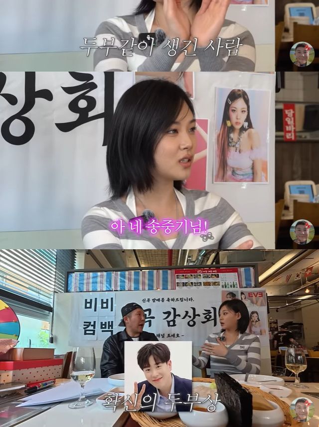 이어 조세호의 "누가 있지"라는 질문에 제작진은 송중기를 언급했고, 비비는 공감하며 송중기와 블락비 피오를 이상형으로 꼽았다.
