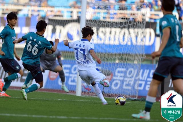 인천은 18일 오후 4시 30분 안산 와~스타디움에서 열린 안산 그리너스와 하나은행 K리그2 2025 12라운드 원정 경기에서 무고사와 박승호의 득점에 힘입어 2-0으로 이겼다.