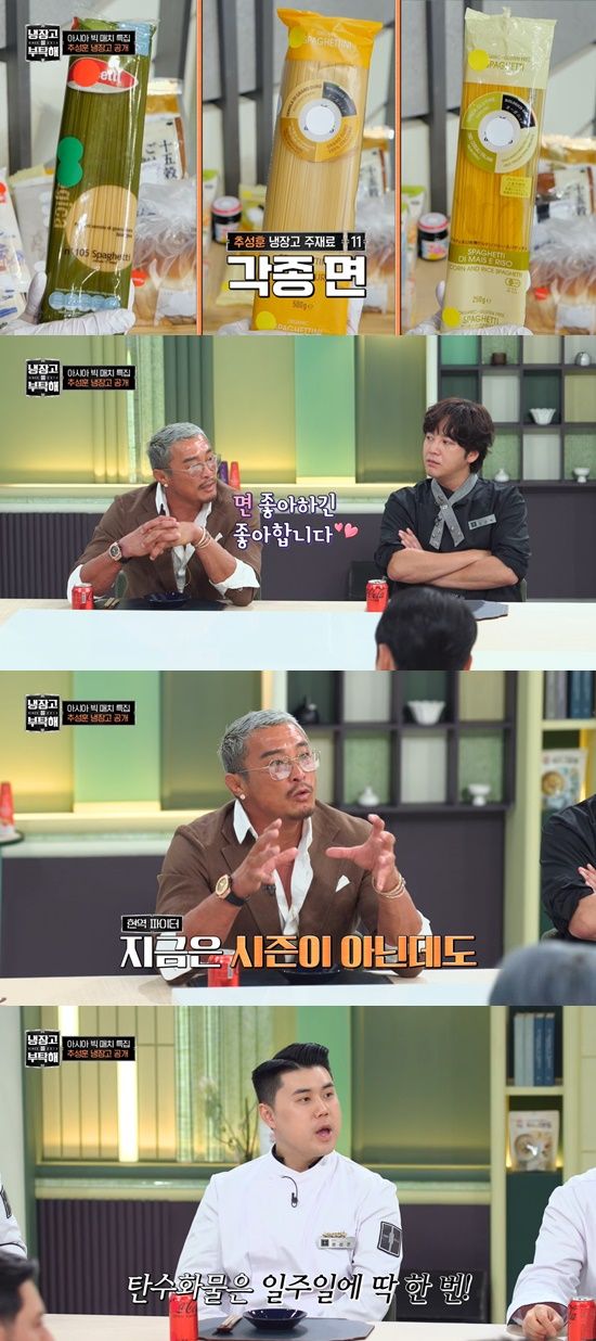 이에 추성훈은 "면 같은 거 좋아하긴 한다"면서도 "지금 시즌이 아닌데도 탄수화물을 일주일에 한 번 먹는다"고 철저한 자기관리법을 공개해 셰프들을 놀라게 했다.