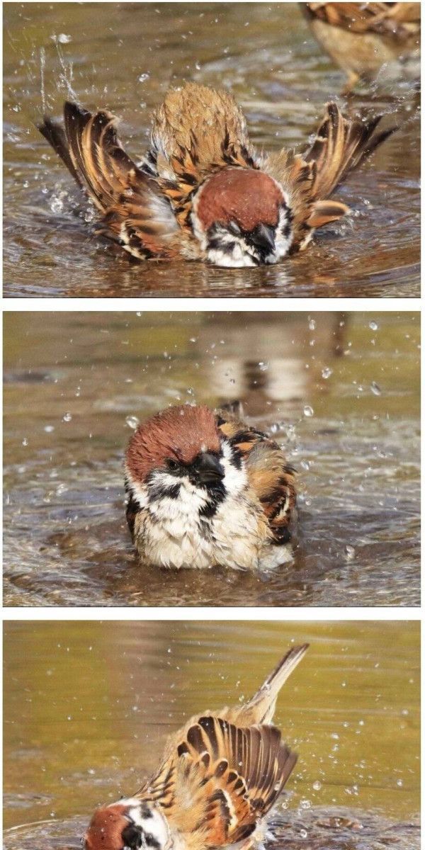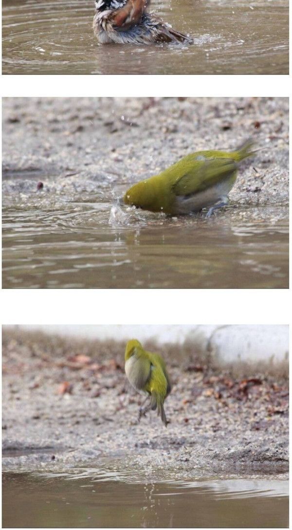 한겨울 참새가 목욕하는 것을 본 동박새