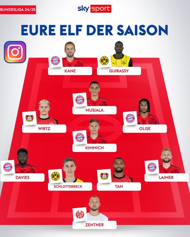매체는 2024-25시즌 분데스리가 올해의 팀 수비 라인에 리그 챔피언 뮌헨 선수들을 한 명도 뽑지 않았다.