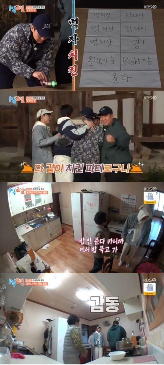 멤버들은 치킨을 먹은 뒤 각자 자야 하는 할머니 집으로 흩어져 취침에 들어갔다.