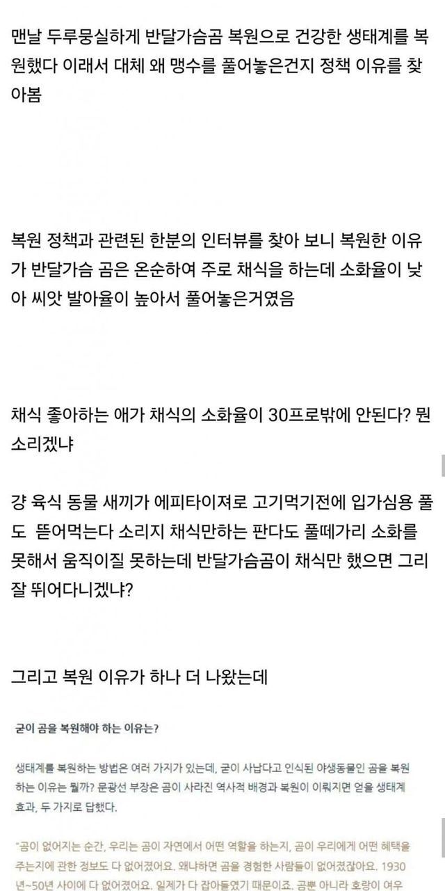 지금 반달곰 개체 수 급격하게 늘어나서 관리도 안된다는데 ㅋㅋㅋㅋ