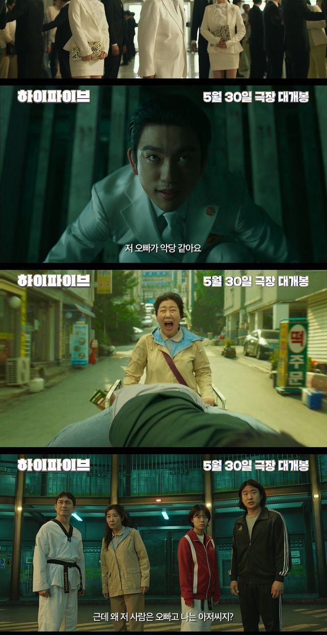 함께 공개된 2차 예고편은 장기 이식과 함께 초능력을 얻게 된 팀 ‘하이파이브’와 그들의 능력을 탐하는 빌런 ‘영춘’이 맞서는 장면으로 시선을 붙든다. 이어 “너 장기기증 여섯 개 할 수 있는 거 알지?”라며 또 다른 초능력자의 존재를 추리하는 작가지망생 ‘지성’을 시작으로 돌려차기 한 방에 천장을 뚫는 태권소녀 ‘완서’, 핑거스냅 한 번에 모든 전자기기를 컨트롤하는 힙스터 백수 ‘기동’, 자신의 초능력을 찾기 위해 이것저것 시도해보는 미모(?)의 프레시 매니저 ‘선녀’, 약손 하나로 다친 사람들을 치유하는 작업반장 ‘약선’, 딸 ‘완서’를 위해서라면 물불 가리지 않는 갓반인 ‘종민’까지 각기 다른 능력을 가진 이들이 등장해 버라이어티한 매력을 뽐낸다. 여기에 젊음을 얻은 새신교 교주 ‘영춘’이 등장하면서 분위기는 급반전된다. “그 비천한 몸들 나한테 바치라고” 라는 대사와 함께 절대자가 되기 위한 ‘영춘’의 계획이 드러나고 이내 살벌한 공격이 시작되는 가운데, 모든 능력을 총동원해 악당에 맞서는 팀 ‘하이파이브’의 타격감 높은 액션과 극강의 재미를 엿볼 수 있다.
