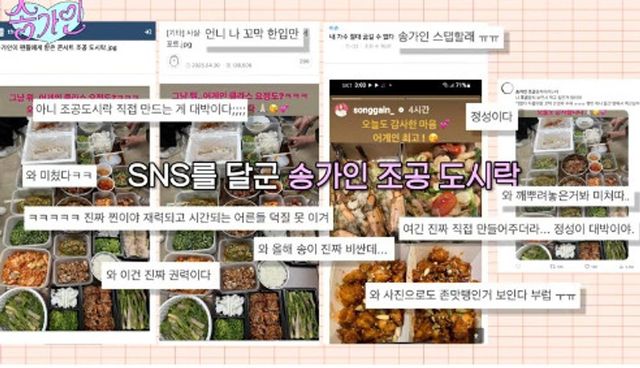 [TV리포트 = 하수나 기자] 트로트 가수 송가인이 한식뷔페 수준인 팬들의 역대급 조공도시락을 공개했다.