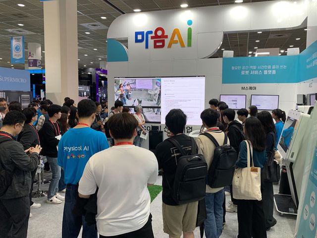 전시의 중심에는 마음AI가 개발한 자율주행·대화형 로봇 '에이든(AIden)'이 있었다. 음성으로 질문하면, 로봇이 주변 환경을 스캔하고 자율적으로 반응하는 시연을 통해 Physical AI 기술의 실시간 작동성과 상호작용 능력을 직관적으로 보여줬다.
