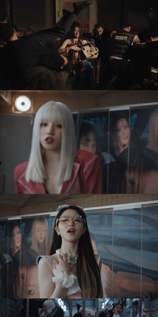 또 다른 장면에선 흰색의 티셔츠와 청바지를 매치한 멤버들이 밝고 청순한 매력을 드러내고 있다. 극명한 온도차를 드러내고 있는 아이들의 모습은 또 다른 도약을 위한 과감한 시도와 예측 불가능한 표현을 통해 기존의 틀에서 벗어난 아티스트로서의 면모를 보여준다.