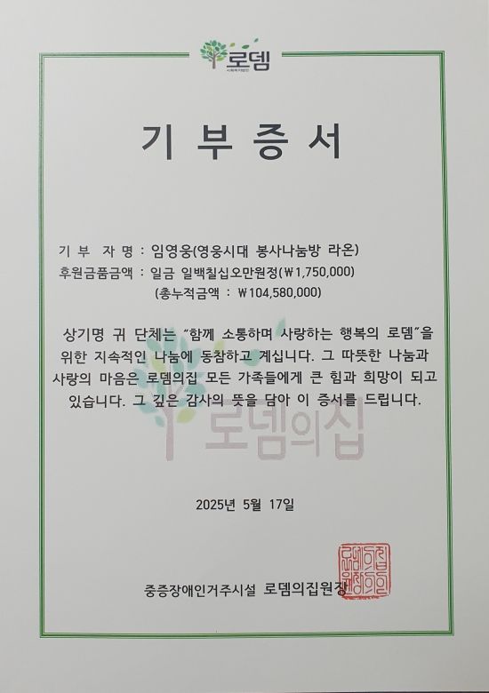 마지막으로 '라온'은 "나눔의 가치를 실천하는 가수 임영웅의 팬으로서, 소외된 이웃에게 따뜻한 온기를 전하고자 더욱 꾸준하게 노력하겠다"라고 다짐했다.