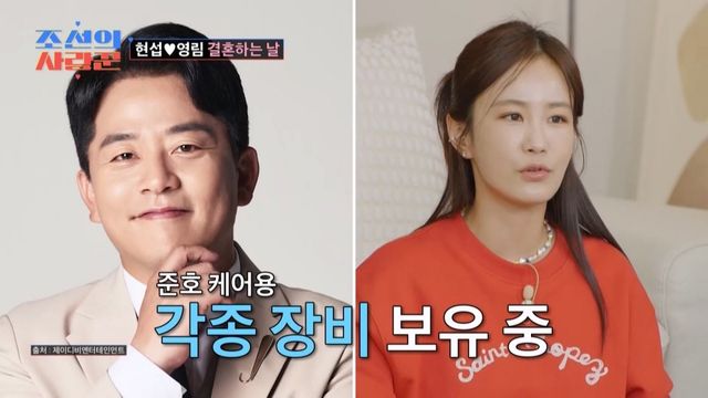 심현섭은 "서울에 올라오면 (영림이한테서) '뭐 입었냐'고 문자가 온다. 또, 영림이가 (날 위해서) 코털 깎는 기계까지 들고 다닌다"며 불평 같은 자랑(?)을 전했다. 이에 '김준호♥' 김지민은 "영림 씨가 나랑 똑같은 삶을 살고 계신다. 나도 지금 당장 간병인 시험 보면 딸 수 있을 것 같다"며 "(김준호를 위해) 발 각질 제거용 풋파일부터 새치 염색제까지 들고 다닌다”고 감정 이입했다.