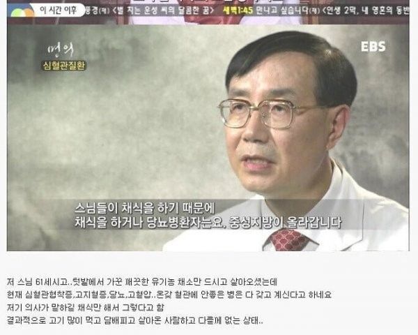 채식 위주로 식사했는데도 심혈관 질환에 걸린 스님