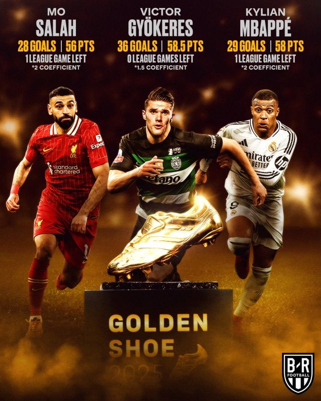 빅터 요케레스(스포르팅 CP) 킬리안 음바페(레알 마드리드) 모하메드 살라(리버풀)가 정규리그 마지막까지 치열하게 유러피언 골든슈 경쟁을 벌이고 있다.