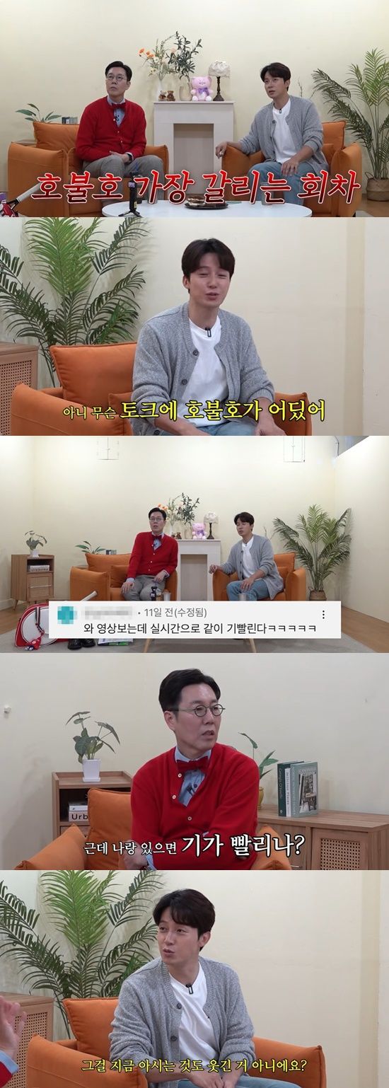 이어 '와 영상보는데 실시간으로 같이 기빨린다'는 댓글을 본 김영철은 "근데 나랑 있으면 기가 빨리나? 기 빨린다는 사람들 얘기가 하도 많아가지고"라고 의문을 표했고, 허경환은 "그걸 지금 아시는 것도 웃긴 거 아니냐"고 황당해했다.