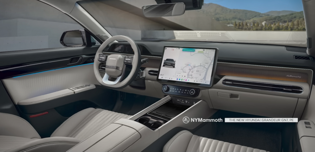 스파이샷을 바탕으로 유튜브 채널 ‘NYMammoth’가 제작한 실내 렌더링을 보면 새로운 그랜저의 인테리어는 넓고 미니멀한 대시보드 중앙에 팝업 형태의 대형 디스플레이를 배치한 미래지향적 구성이다. 이는 단순한 변화가 아닌 현대차의 미래 모빌리티 방향성을 예고하는 것이다.