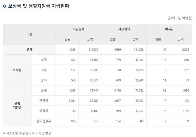 또 “2022년 12월 31일 기준 행안부 민주화운동 보상금 및 생활지원금 지급현황에 따르면, 그간 사망한 유공자 120명에게 보상금 165억9800만원이 지급돼 사망 유공자 1인당 평균 1억3800만원을 지급했다”면서 “사망을 포함한 보상금·생활지원금은 총 4939명에게 1147억2600만원이 지급돼 유공자 1인당 평균 2322만원을 지급했을 뿐”이라고 강조했다.