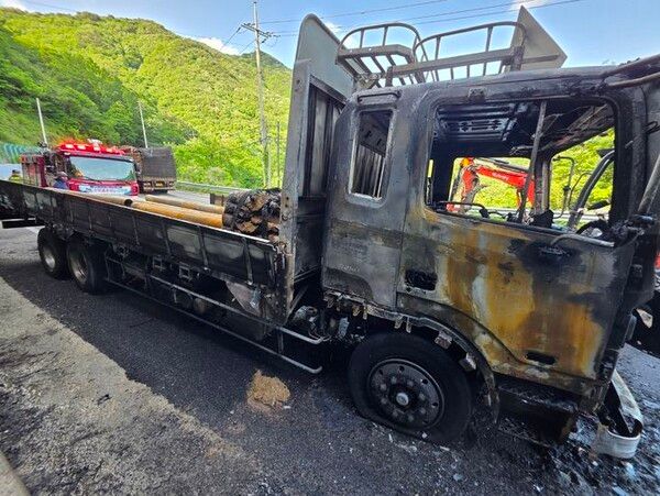 당시 해당 트력은 천공 장비(구멍을 뚫는 장비)를 싣고 충남에서 완주군 고산면으로 향하던 중 불이 났다.