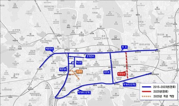 뉴시스 보도에 따르면, 시는 '창경궁로 도로공간재편사업'을 이달 말 완료하고 종로4가~퇴계로4가에 이르는 0.9㎞ 구간을 걷기 편한 보행친화거리로 운영한다고 21일 밝혔다.