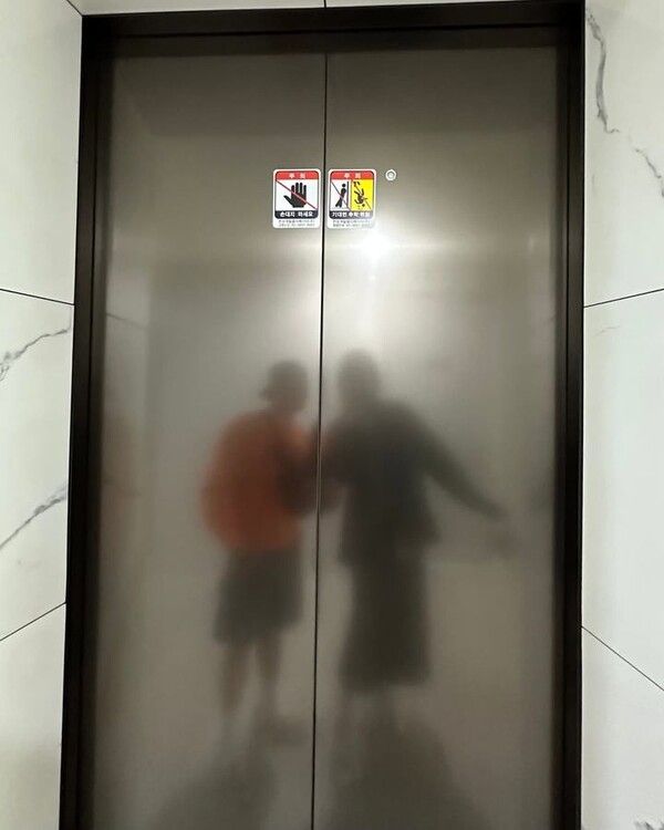 엘리베이터에 비치는 두 사람의 키 차이도 눈에 띄었다.