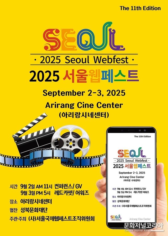 문화저널코리아 김기범 기자 | 웹콘텐츠 창작자들의 글로벌 축제인 제11회 서울국제웹페스트가 오는 9월 2일부터 3일까지 서울 성북구 아리랑시네센터에서 개최된다.