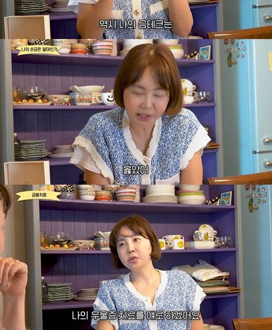 전문가는 "금융치료라는 게 지금 당장 가서 백화점에 쓰는 게 아니라 내 보석함에 있는거 꺼내서 보라"고 말했고, 황혜영은 "오늘부터 나의 우울증 치료를 얘로 하겠다"고 너스레를 떨었다.