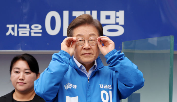 이재명 더불어민주당 대선 후보는 21일 윤석열 전 대통령이 부정선거를 다룬 영화 '부정선거, 신의 작품인가'를 전한길씨 등과 관람한 데 대해 "본인이 이긴 선거 시스템을 부정하는 것"이냐고 비판했다.