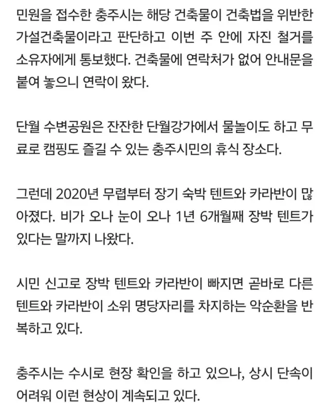강제철거 하고나서 민원인이 진상부리면 삼청교육대 집어넣는 법도 같이 만들어야 함
