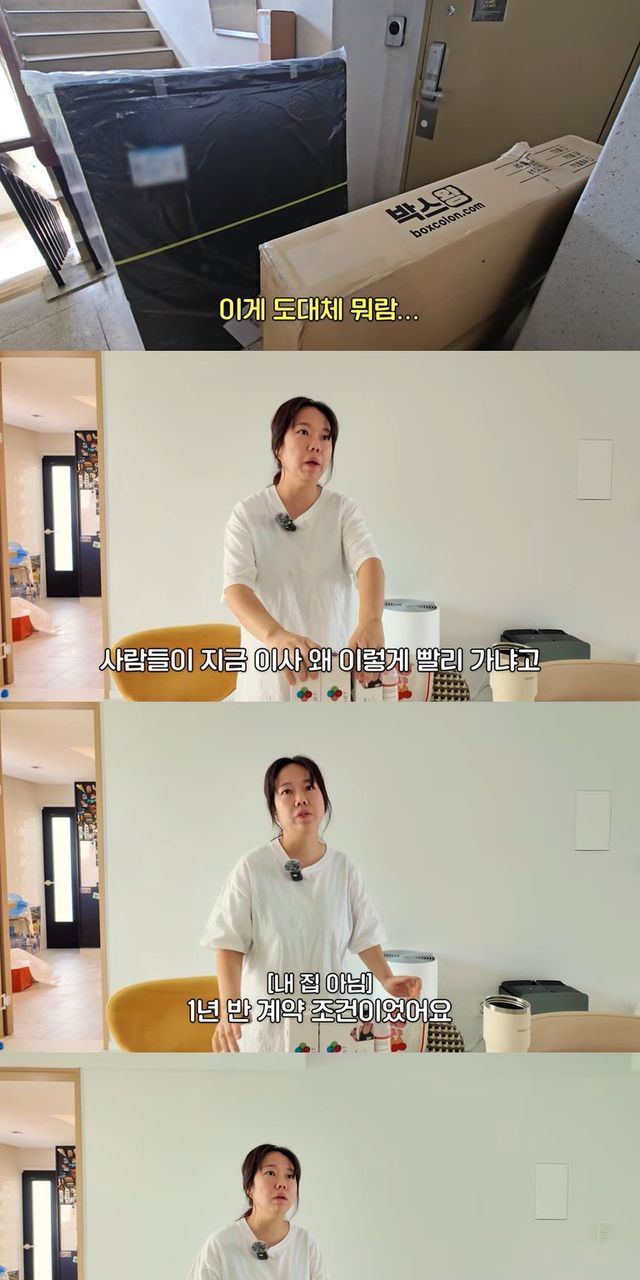 홍현희는 "사람들이 지금 이사 왜 이렇게 빨리 가냐고 (한다) 근데 저희가 원래 여기 1년 반 계약 조건이었다"며 계약기간 만기로 인한 이사임을 전했다.