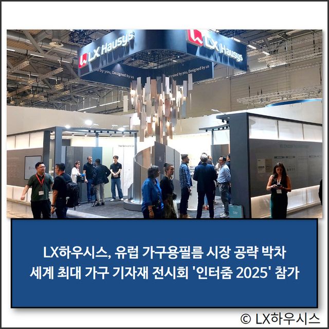 LX하우시스는 지난 20일부터(현지시간 기준) 23일까지 독일 쾰른에서 열리고 있는 '인터줌 2025'에 참가, 유럽시장에서 수요가 높은 무광택 표면 및 바이오 가구용 필름 제품 90여종을 대거 선보이고 있다.