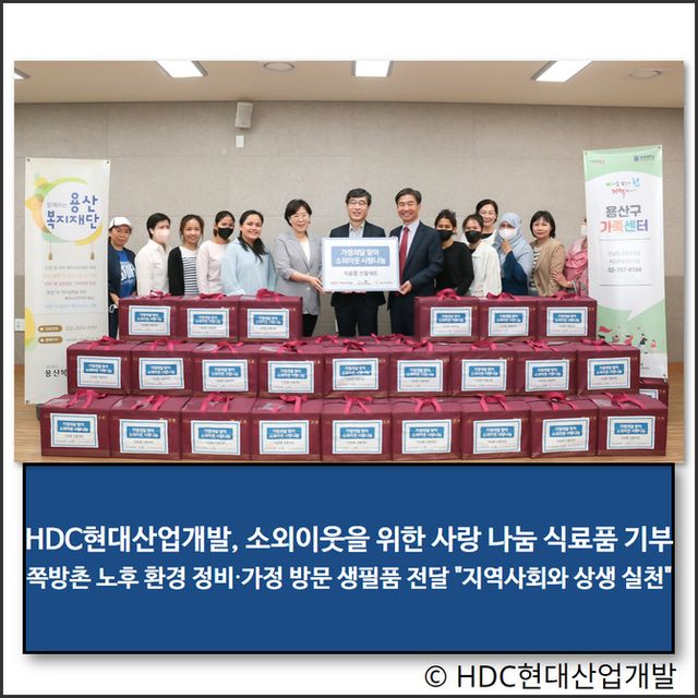 HDC현산 관계자는 "본사가 있는 용산 지역사회에 필요한 지원이 무엇인지 고민하던 차에 지역 주민들이 실질적으로 필요한 식료품을 지원하게 됐다"며 "이번 식료품 지원이 일회성에 그치지 않고 도움이 필요한 곳에 꾸준히 온기를 불어넣을 수 있도록 지역사회의 필요한 부분을 두루 살피겠다"고 전했다.