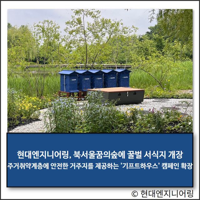 현대엔지니어링이 5월20일 '세계 벌의 날'을 맞아 서울 강북구 북서울꿈의숲에서 '꿀벌 서식지' 개장식을 진행, 생물다양성 보존을 위한 사회공헌 캠페인 '기프트하우스플랜비(Plan Bee)'를 시작했다.