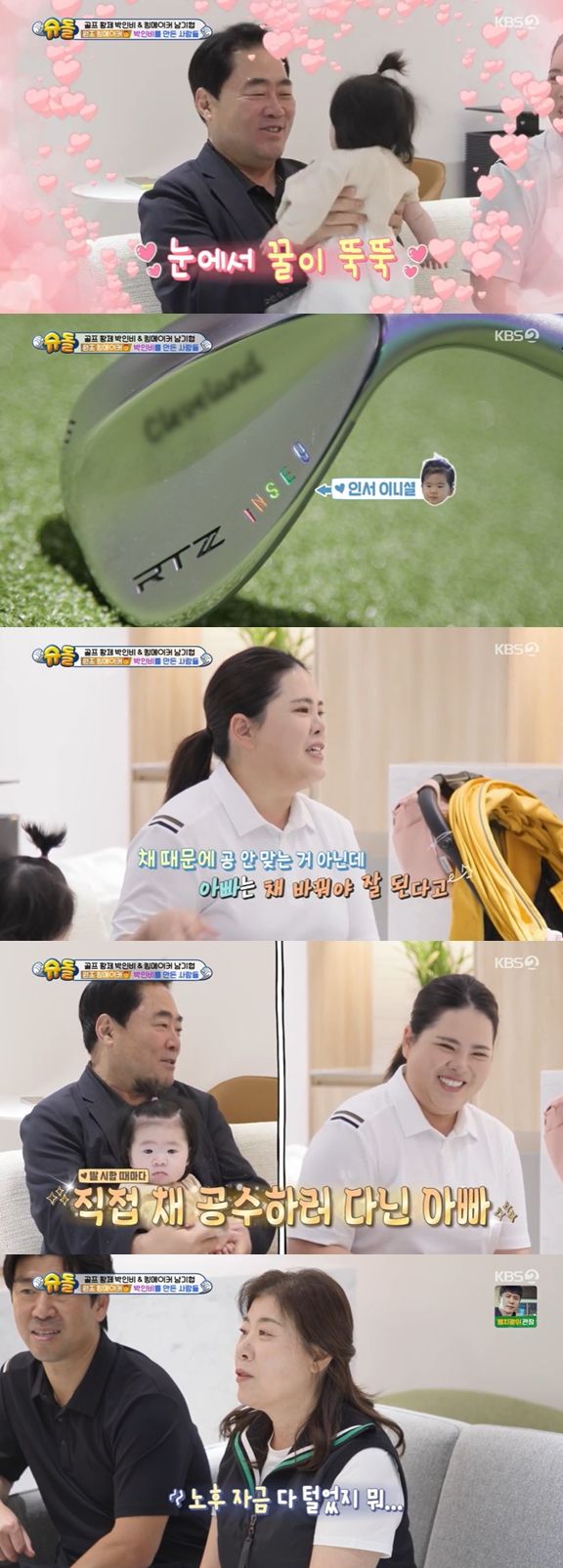 박인비는 딸 인서의 생일을 맞아 직접 길이를 자르고 이름을 각인해 준 골프채를 선물했다. 박인비는 과거 주니어 시절을 떠올리며 "주니어 때 나는 채 때문에 공 안 맞는 거 아닌데 아빠는 채 바꿔야 한다고 새로운 채 사 와서 새 채로 바꿔왔다"라고 말했다.