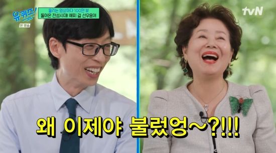 이날 유재석은 "'유퀴즈' 섭외를 드렸는데 '왜 이제야 불렀어?' 하시더라"라며 말문을 열었고, 선우용여는 "정말 기분 나빴다. 다른 사람 다 초대하면서 왜 나를 이제 불렀나. 사람이 간사하다. 조금 내가 뜨니까 부르잖아. 사람은 뜨고 봐야 된다"라며 너스레를 떨었다.