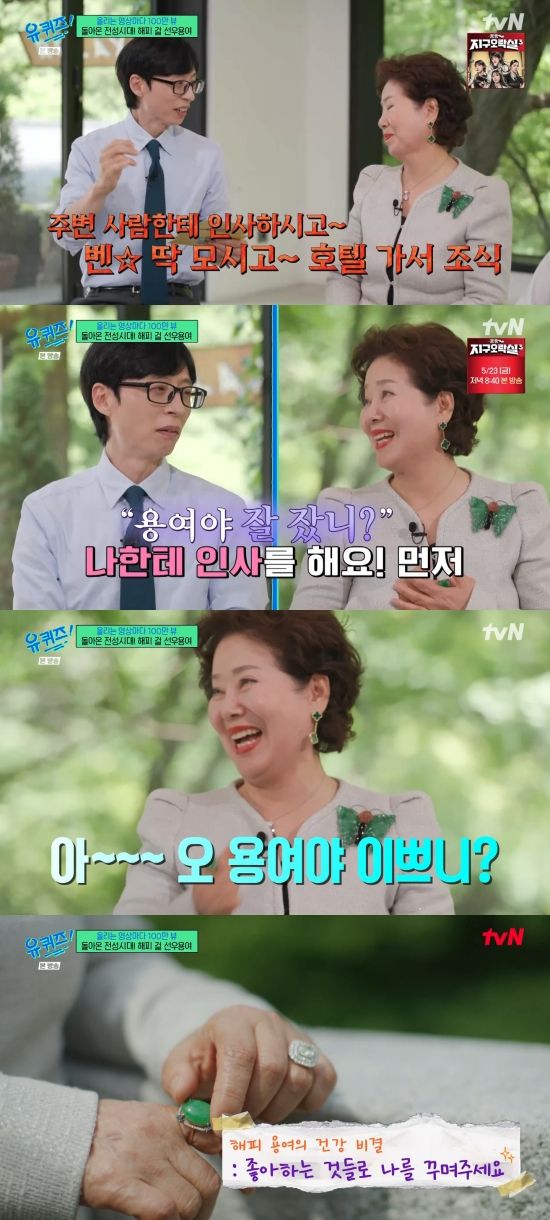 21일 방송된 tvN '유 퀴즈 온 더 블럭'(이하 '유퀴즈')에서는 선우용여가 아침 일과를 밝힌 장면이 전파를 탔다.