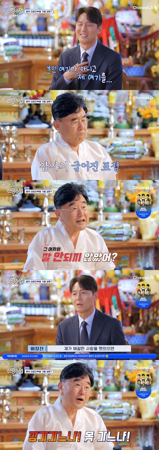 정호근은 웃음기를 거두고 "이정진이 왜 왔어?"라고 하자 이정진은 "결혼 운이나 자녀 운, 시기가 지났다고 없어지는 것은 아니죠?"라고 물었다.