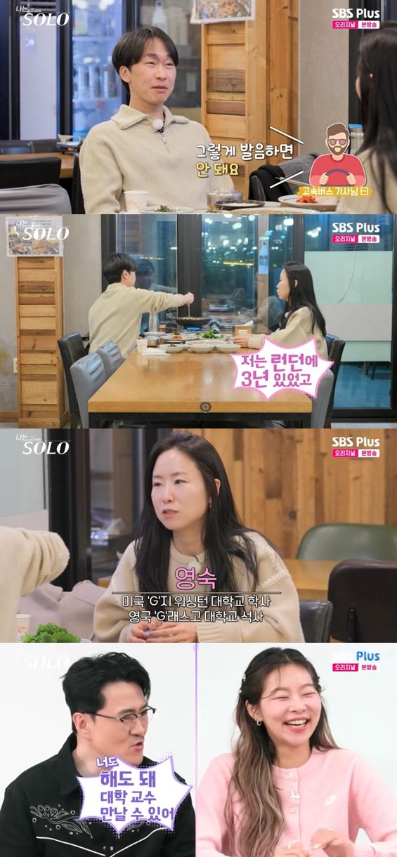 이날 서울대 박사 출신의 교수 영수는 영숙과 데이트 중 학위 과정을 밟던 시절 영국에 딱 한 번 가봤다고 전했다. 영수는 영국에서 고속버스 기사님이 발음을 고쳐줬던 일화를 털어놨다.