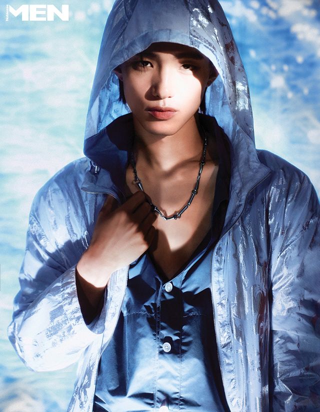 리버서블 후드 재킷과 모크넥 칼라의 버튼 재킷, 체인 목걸이 모두 Herme`s.