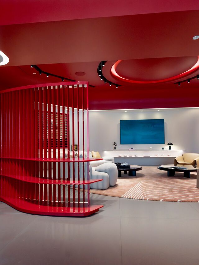 유려하고 간결한 라인, 곡선미와 대담한 형태 등의 디자인 요소들은 페라리 스포츠카 특유의 스타일을 연상시킨다. 동시에, 전시장에 적용된 혁신적인 특징들은 브랜드의 미래 지향적인 비전을 드러내고 있다.