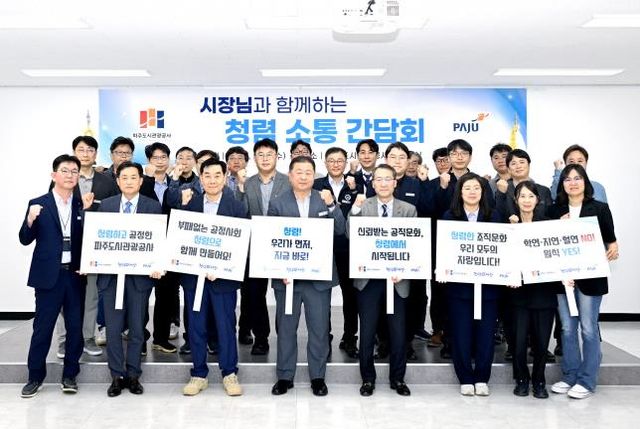 김경일 시장과 파주시 공무원 및 공사 직원 20여 명이 참석한 이번 청렴 소통 간담회는 파주시의 청렴시책 추진 사항을 공유하고 청렴가치의 중요성을 환기하기 위해 마련된 자리로, ▲2025년 파주시-파주도시관광공사 청렴 시책 발표 ▲청렴도 향상 방안 논의로 마무리됐다.