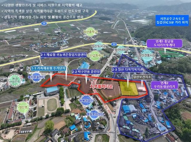이번 사업을 통해 정산면을 중심으로 목·청남·장평면 등 인근지역 4개 면에 주거, 창업, 복지, 의료, 교육이 어우러진 복합 생활거점이 조성될 예정이다.