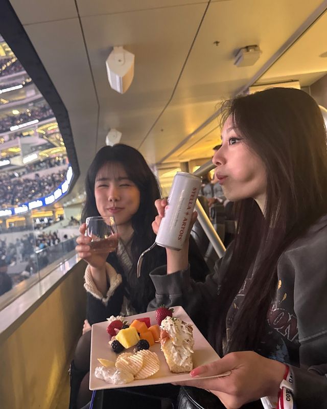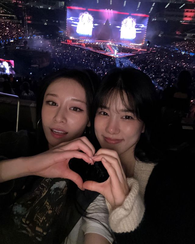 두 사람은 객석에서 음료와 디저트를 즐기며 셀카를 찍는 등 다정한 분위기를 자아냈다. 특히 콘서트장 배경으로 하트를 그리며 돈독한 우정을 자랑해 눈길을 끌었다.