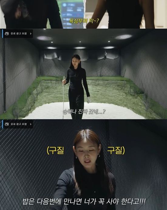 한혜진과 송해나는 골프 내기를 시작했다. 내기는 총 세 판으로 진행됐다. 한혜진은 "(내기 진 사람이) 끝나고 밥 사라. 비싼 거 먹을 거다"라고 말했다. 이에 송해나가 "저 언니는 진짜 비싼 거 먹을 것 같다"며 걱정을 표했다.