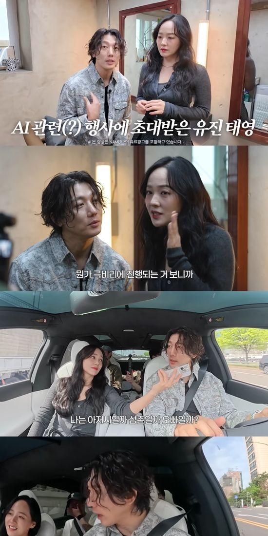 기태영은 "저희가 어떻게 하다 보니까 AI 행사에 초대가 됐다. AI에 관심이 많은 편이다"라고 밝혔다. 유진은 "(행사가) 극비리에 진행된다. 정보 노출이 안 되어 있다. 그냥 무슨 제품이 하나 나왔다 정도의 정보만 있다"고 덧붙였다.