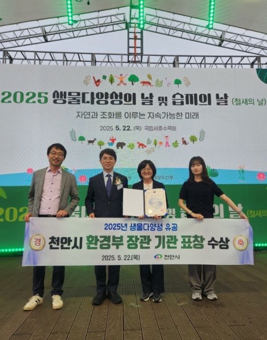 [파이낸셜경제=김영란 기자] 천안시는 22일 국립세종수목원에서 열린 ‘2025년 생물다양성의 날 및 습지의 날 기념행사’에서 생물다양성 유공을 인정받아 환경부장관 기관표창을 수상했다고 밝혔다.