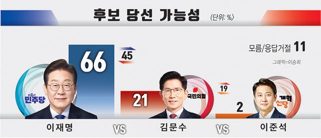 국민의힘은 전통적 지지기반인 60대(45%)와 70대 이상(61%)에서 강세를 보였다.
