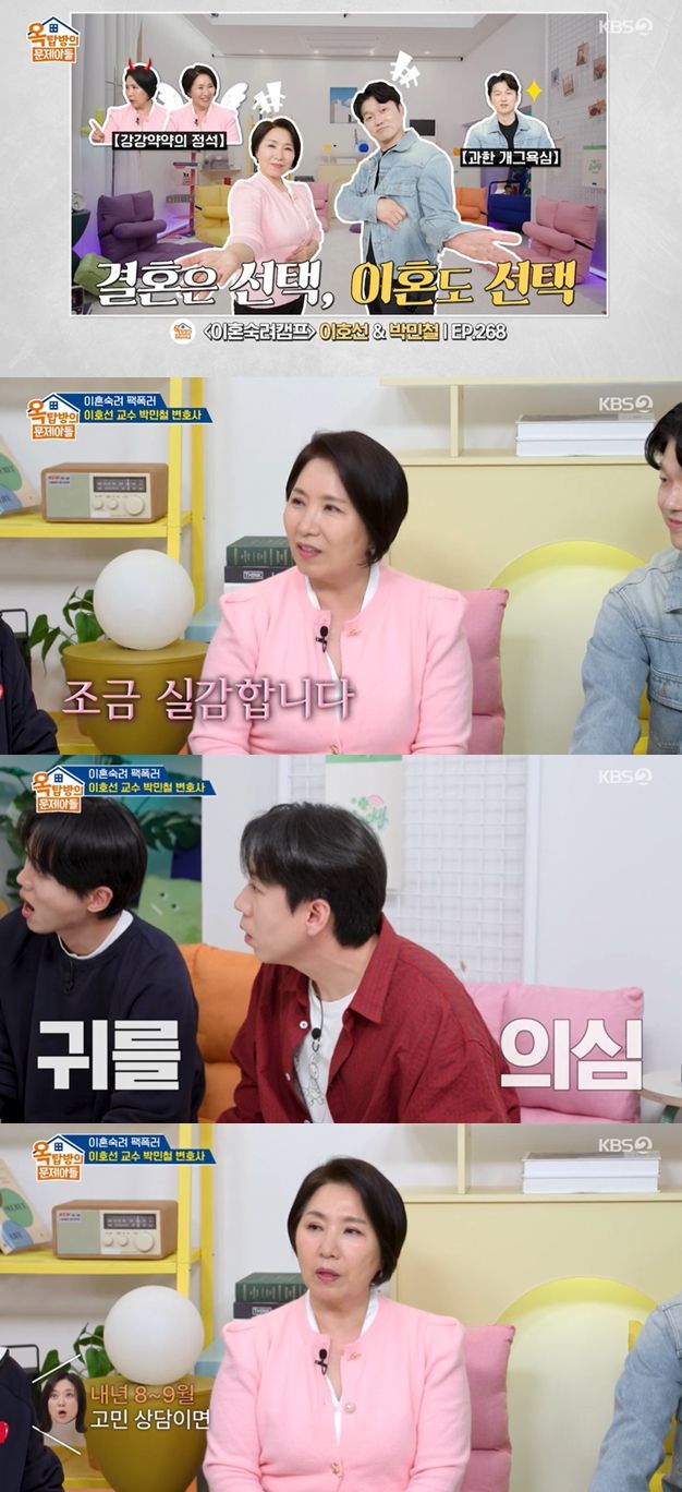 22일 방송된 KBS 2TV '옥탑방의 문제아들'(이하 '옥문아')에는 JTBC '이혼숙려캠프'에서 활약 중인 이호선 교수와 박민철 변호사가 동반 출격했다.