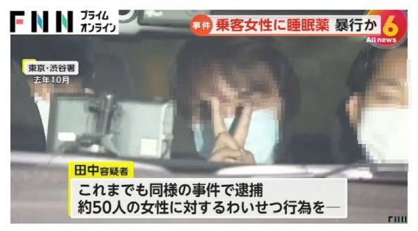 21일 일본 후지뉴스네트워크(FNN), 요미우리신문 등 보도에 따르면 이날 일본 경시청은 전직 택시기사 A씨(54)를 성폭행 및 불법촬영 등 혐의로 체포했다.