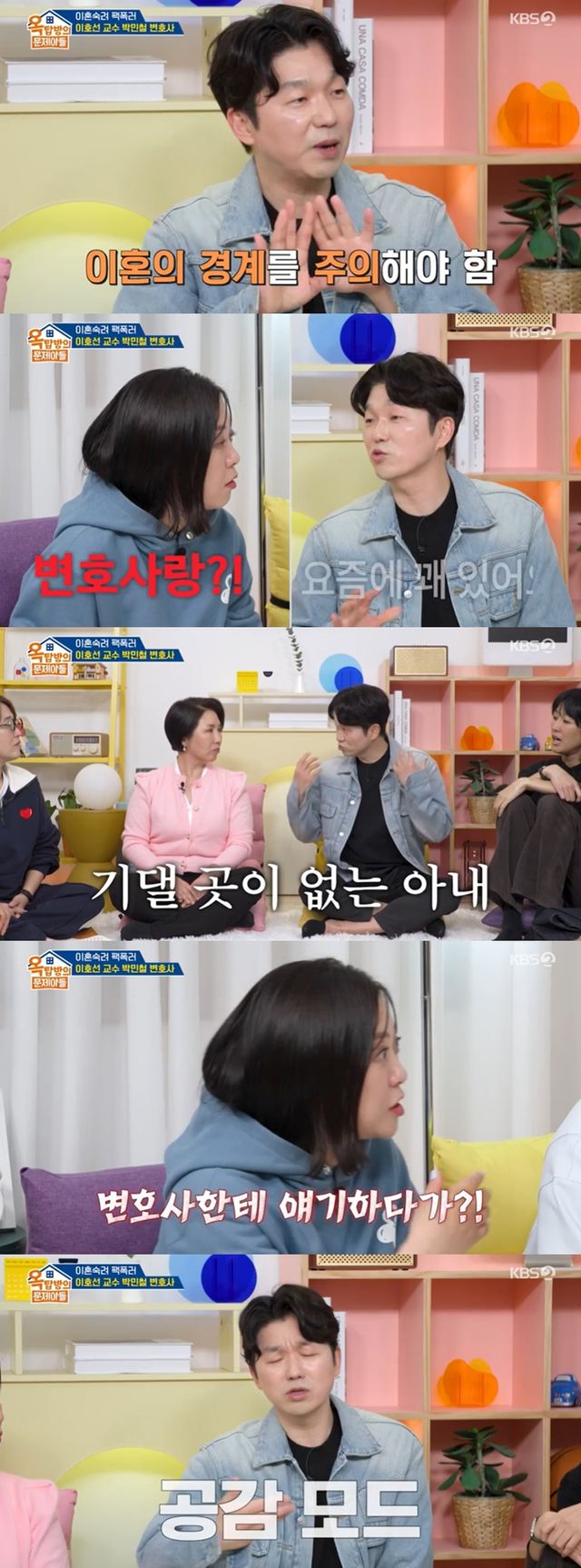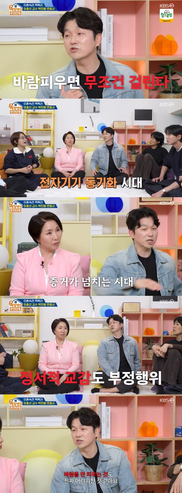 박민철 변호사는 "그래서 항상 애기한다. 서로 간의 컨트롤이 필요하다. 그래야지 확률을 낮춘다"라며 조언했다.