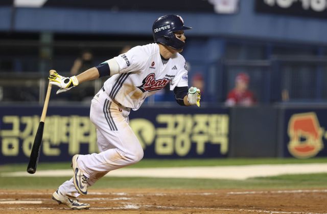 전날 1득점에 그쳤던 두산은 이날도 7회까지 1득점에 묶였다. 그대로 6연패가 이어질 것 같던 순간, 하위 타선이 힘을 냈다. 두산은 8회 말 2루타 후 볼넷 2개로 만든 1사 만루 기회에서 7번 타자 오명진이 바운드 큰 내야 타구를 만들었다. 체공 시간이 조금 있긴 했으나 1루에서 아웃 카운트로 처리될 위기. 타자 주자 오명진은 전력으로 1루로 달려 아웃 카운트를 세이프로 바꿨다.