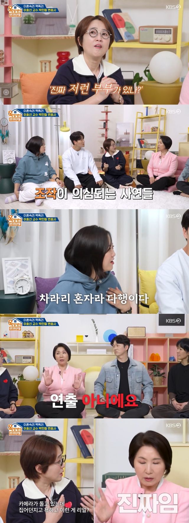 22일 방송된 KBS 2TV '옥탑방의 문제아들'(이하 '옥문아')에는 JTBC '이혼숙려캠프'에서 활약 중인 이호선 교수와 박민철 변호사가 동반 출격했다.