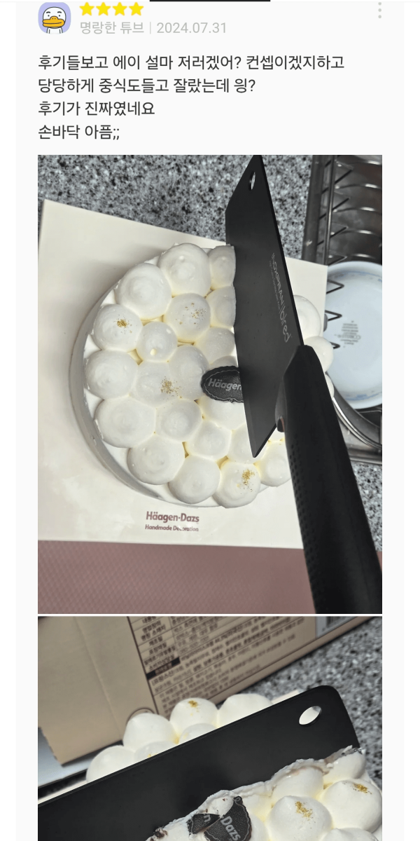 카카오톡 선물하기 베스트셀러 <하겐다즈 케이크> 후기 상태