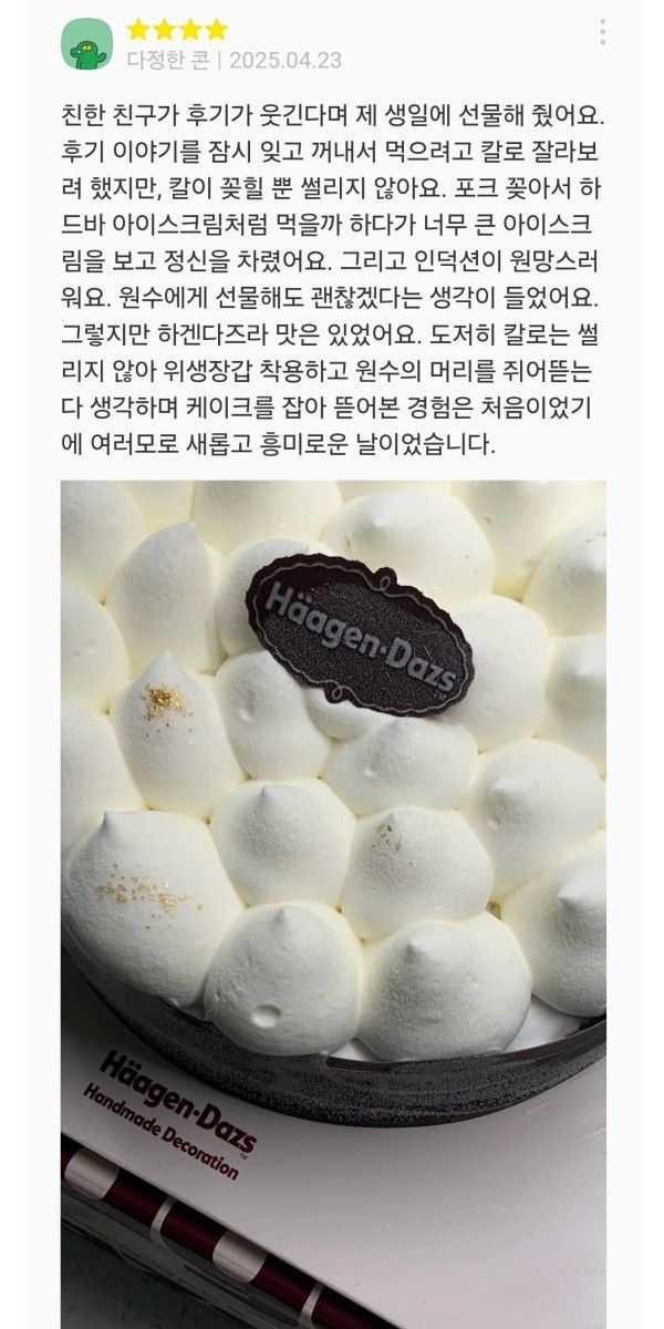 카카오톡 선물하기 베스트셀러 &lt;하겐다즈 케이크&gt; 후기 상태 카카오톡 선물하기 베스트셀러 &lt;하겐다즈 케이크&gt; 후기 상태